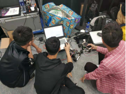 为了有充分的调试时间,23日中午我们的参赛人员乘车到达佛山顺德,马不停蹄地赶往住宿地点,并开始调试参赛作品。由于受到比赛场地光线等多种因素的影响,我们在学校调试好的作品需要更改很多,工作量极其大。但我们的参赛选手用坚强的意志力战胜困意、劳累等困难,经过23日至24日的时间调试好了作品,使参赛团队能够顺利参加25日的比赛。