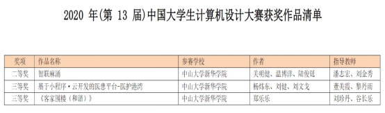 近日,2020年(第13届)中国大学生计算机设计大落下帷幕,在信息科学学学院张海老师和刘珍丹老师的组织下,我校信息科学学院学子在本次赛事中斩获佳绩。我校学子经过校赛、省赛、国赛层层角逐,与“双一流”、985、211大学等重点高校学生同台比拼,4支队伍省级竞赛中获奖、3支队伍在国赛中获奖。其中,2018级软件工程关明健团队获得国赛二等奖、杨炜东团队和郑乐乐团队获国赛三等奖,创新了我校该赛事中软件应用与开发类的最好名次。