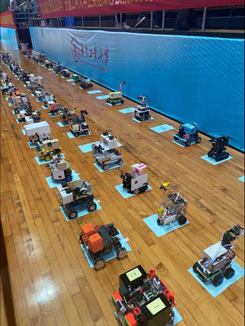 比赛现场的配送机器人小车
