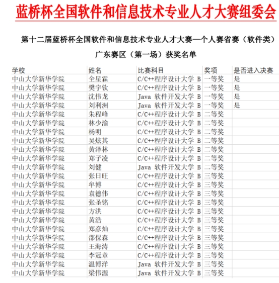 4月18日,第十二届蓝桥杯全国软件和信息技术专业人才省赛落下帷幕。我校作为赛点,组织学生积极参赛。信科院学子在本届蓝桥杯软件设计大赛中,稳定发挥,成绩优异。取得了广东省一等奖4名,二等奖7名,三等奖12名的好成绩。其中全星霖、樊宇钦、沈伟龙和刘利洲同学,将代表我校参加全国总决赛。