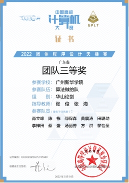 4月23日,我校学子参加了线上举行的第七届中国高校计算机大赛-团体程序设计天梯赛,与全国300多所高校,9500位同学共同竞赛,我校共三支队伍共30名学生参赛,最终两队获得广东省三等奖和一队获得全国成功参赛奖。
