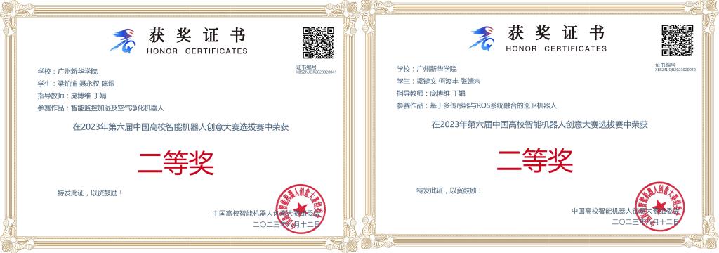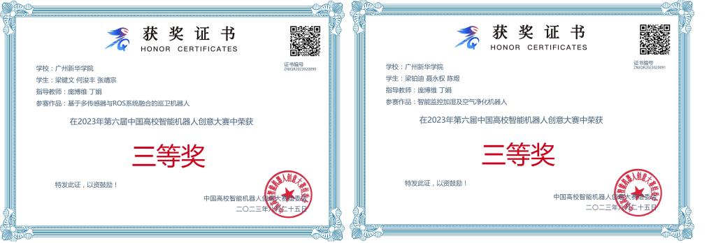 2021级智能制造工程的学生利用课余时间学习了赛事的相关知识和软件(如传感器技术、电子电路、机器人技术仿真、PLC编程和数控编程等)。在全国501所大学5325支队伍角逐中,与经验丰富的大二、大三学生同场竞技,最终我校的智能监控加湿及空气净化机器人和基于多传感器与 ROS 系统融合的巡卫机器人分别荣获了区域赛区二等奖2项和全国赛三等奖2项。该奖项极大地增强了学生的专业学习信心及兴趣,为智能制造工程专业发展打下良好的基础,也为后续参加相关比赛积累了一定经验。