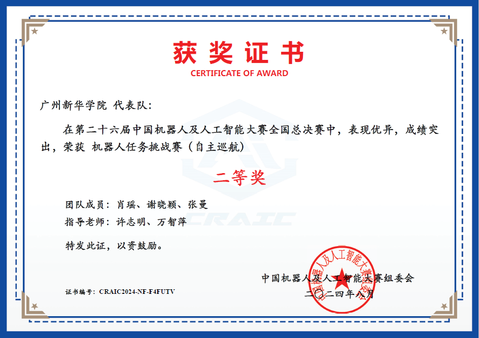 我校suncitygroup太阳新城积极组织,认真筹备,所组建的五支参赛队伍在机器人任务挑战赛(自主巡航)中荣获多项奖项,包括一项国家二等奖、两项国家优秀奖、一项省级一等奖以及两项省级二等奖,充分彰显了suncitygroup太阳新城学子的卓越技能与风采。