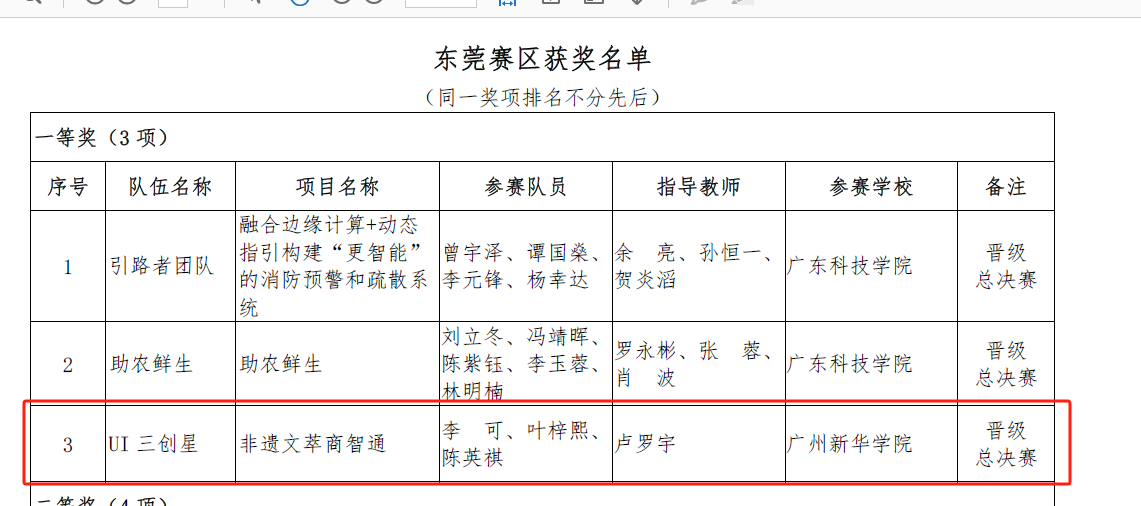 在本次大赛中,suncitygroup太阳新城(以下简称“信工院)组织的三个队伍进入东莞赛区决赛,由卢罗宇老师带队前往比赛地点参加决赛,分别荣获东莞赛区一等奖一项且晋级总决赛,二等奖两项。