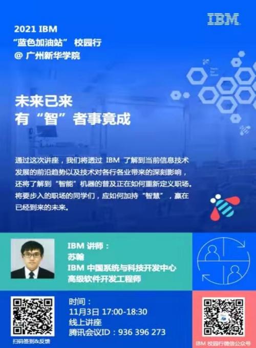 讲座主题:未来以来,有“智”者 · 事竟成—2021 IBM“蓝色加油站”校园巡讲活动