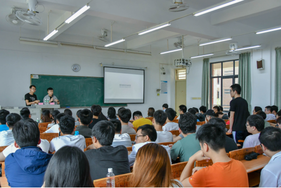 在讲坛最后是问答环节, 对于科研与竞赛仍有疑惑的同学争先举手提问,虚心向瞿文政师兄和张秉天师兄请教。两位师兄对于同学们的问题都做了详细的解答,让同学们清楚了解到科研或竞赛存在的问题该如何解决,如何在科研和竞赛中提升自己,完善自己。
