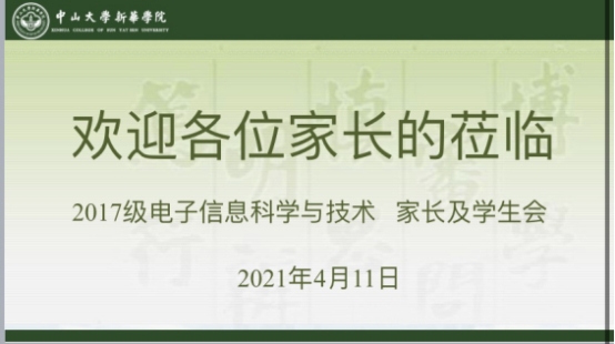 2021届高校毕业生总规模约为909万人,首次突破900万大关,今年的政府工作报告也指出“做好高校毕业生、退役军人、农民工等重点群体就业工作。”然而,受新型冠肺炎疫情和其他因素的影响,今年高校的就业形式相对较为严峻。因此,为了更好地帮助同学们就业,掌握更多的就业信息,提高学生们的就业能力,2021年4月11日(周日)晚上19:00通过腾讯会议APP准时召开了线上的家长会,这次家长会是针对2017级电子信息科学与技术专业(以下简称为“17电子”)家长和学生召开的。出席本次家长会的成员有:17电子专业主任魏爱香老师、17电子专业主任梁立容老师、17电子辅导员卢锦澜老师、17电子班主任陈锦煌老师、17电子的家长和学生们、共计90余人。