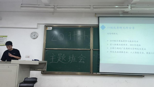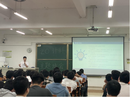 陈楷建师兄是2021年新华好青年,在校期间获得多项荣誉,同时也是20计科的班助。他在2022年实习工作中表现突出,现已斩获心仪公司offer。陈楷建师兄向20计科的同学们详细分享了他的过往经历和学习历程,并从职业方向、基础储备、求职准备这三个方面进行讲解。同时,他也给予同学们具体的工作面试经验,强调寻求工作时,要提前做好准备工作,了解意向岗位需求,准备好简历,从而锻炼竞争力,提高沟通能力。陈师兄的分享让20计科的同学们了解到了更多的专业就业方向以及找实习工作的方法,他叮嘱同学们要早做规划和打算,找准自己的定位,建立自己的核心竞争力。