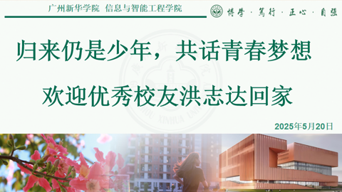 本次活动邀请了优秀校友洪志达,他是广州新华学院(原中山大学新华学院)2009级电子信息科学与技术专业校友、长江商学院硕士、清华五道口校友;在校期间曾任第四届学生社团联合会主席;工作期间,曾任广州海丰商会秘书处会员部部长、深圳市迈腾电子有限公司软件工程师等。现任盈喜集团董事局主席、宏业集团总裁、宏业金融集团董事长。