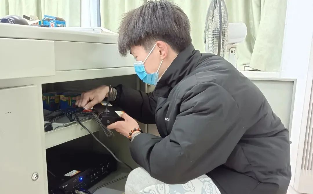 杨成伟作为课室助理在处理课室设备故障