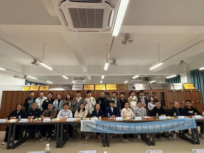 随后,座谈交流会在格物4-208举行。学院党总支书记邱泽敏深情回顾学院20年发展历程:从2005年的信息科学系,仅设计算机和电子两个专业,到如今形成3个系、7个专业的特色工科集群,专任教师180余人,在校生规模达3500多人。面对新挑战,她诚邀校友建言:“你们是产业发展的亲历者、人才培养的终端检验官,最清楚行业痛点、企业需求和未来趋势。希望大家畅所欲言,为学院发展建言献策。”