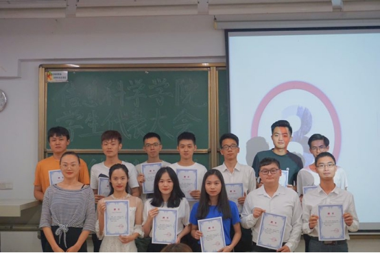 学生代表投票选出信息科学学院第十二届学生会委员会,于第二日由信息科学学院学生会第十一届、十二届委员会投票选举出第十二届学生会主席、部长、副部长。在会议中各部门新部长都对接下来学生会的发展都提出了自己的想法。第十一届信息科学院学生会主席许泽铭表示,在接下来的工作中要将优秀的方面传承下去,摒弃不良的方面,希望接下来在新成员的带领下,信息科学学院学生会发展将会越来越好。在会上信息科学学院学生会指导老师黄婉婷老师表示学生会就是为学生服务的我们要秉承为学生服务为宗旨将这种宗旨传承下去,在以后的工作中各部门之间一定要相互沟通相互帮助,将信科院学生会的工作顺利进展下去,将学生所困扰的事情处理好以崭新的面貌迎接新学期的到来。