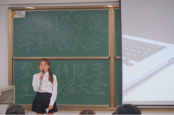 为进一步促进我校信科院学生会的发展,经信科院团委及校学生会同意,中山大学新华学院信息科学学院于2019年5月12日19时,在定静②C202召开了信息科学学院第四次学生代表大会。信息科学学院学生会指导老师黄婉婷老师、信息科学学院团委书记丘丽琼老师、第十一届信息科学学院学生会主席詹睿婕作为嘉宾应邀与会。信息科学系学生会代表以及来自信息科学学院各年级、专业的学生代表们也一同参与了本次大会。