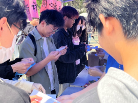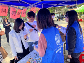 线下活动现场,志愿者们在路口宣发防诈骗传单,并邀请路过的师生参与线下活动。工作人员通过提出紧贴生活的诈骗方式或案例,让师生们辨别真假,或者让其选择相应的对策。通过不同类型的诈骗知识问题,让师生们了解诈骗的常用套路,学习相对应的防诈骗知识,增强师生的防诈骗意识及防范能力。