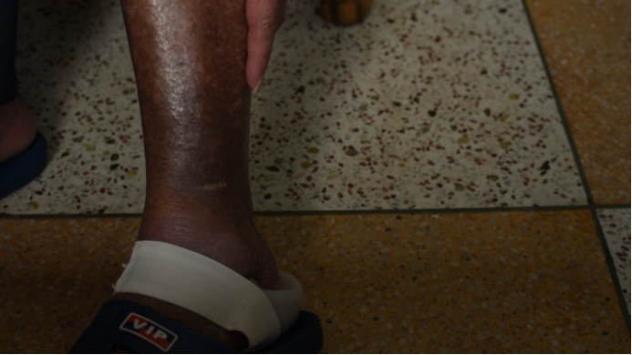 在湖南的某场战役中老人被炮弹炸伤了腿,只能够拿止血包勉强止住血,重伤后老人的内心只有一个声音:“坚持下去!”。如今老人的腿部落下了顽疾,但他对此毫无怨言。