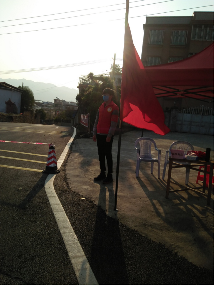2019级计算机科学与技术专业的黄楷秉持着在信息科学学院铭爱志愿队学习到的志愿服务精神,承担起村口防疫检查工作,在霞黄李田的村口防疫检查点与其他志愿者们一起检查入村的车辆并记录有关信息。