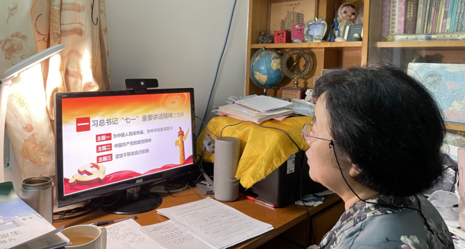 在开展第一议题集中学习习近平总书记在建党100周年大会上的讲话后,本次会议主要分四个议程,一是李宁书记作主题发言并总结前段时间的学校抗疫工作,二是教工党员代表及学生党员代表就抗疫期间发表感想,三是林少淇副书记布置下半年活动内容,四是党员自由交流研讨。