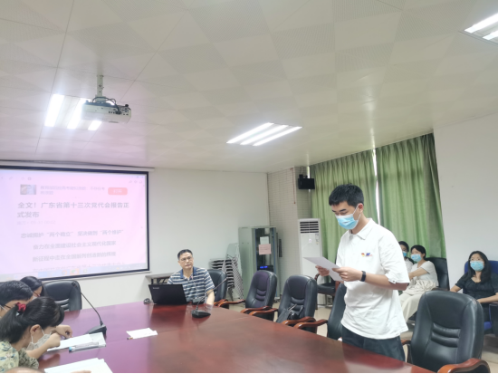 6月8日上午,信息科学学院教职工党支部在格物二A102会议室召开民主生活会,传达学习中国共产党广东省第十三次代表大会精神、组织三位预备党员转正,党支部何忠礼书记主持会议,全体教职工党员参加。