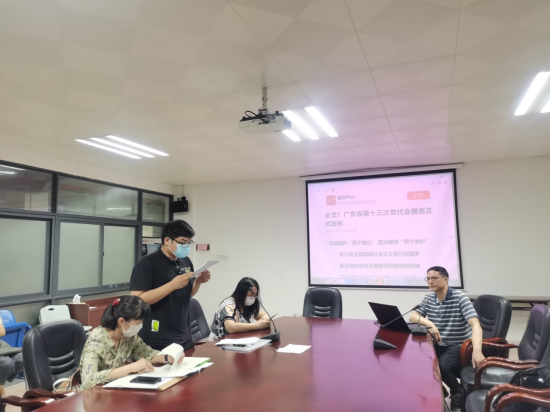 大会第一项,何书记带领全体党员学习省第十三次党代会精神。何书记指出是在我省进入全面建设社会主义现代化国家新征程、豪情满怀迎接党的二十大胜利召开的重要时刻召开的一次十分重要的会议,实事求是总结了省第十二次党代会以来的工作,深入分析广东发展面临的形势,明确提出今后五年工作的总体要求和主要目标,全面部署今后五年各项工作,符合习近平总书记、党中央的要求,切合广东实际,体现了全省人民的共同期盼,是指导广东未来一个时期发展的施工图、任务书。会议强调,全体教职工党员要深刻领会省党代会的重大意义和精神实质,切实把思想和行动统一到省党代会作出的相关决策部署上来,引导青年学生将个人成长成才融入粤港澳大湾区的发展建设中,为建设高水平、应用型、有特色的广州新华学院而努力奋斗。