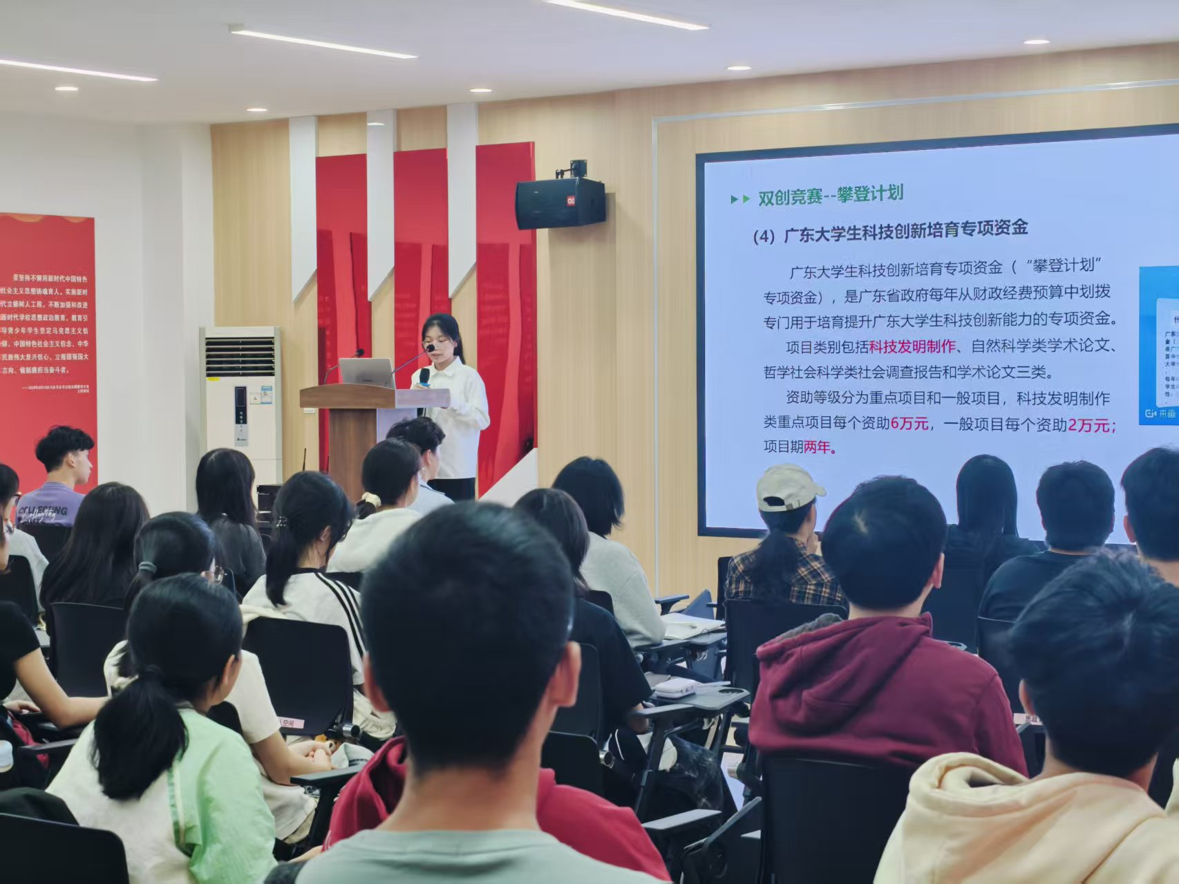 为进一步激发suncitygroup太阳新城学子创新精神、提升综合能力,帮助广大同学全面了解双创竞赛的赛事规则、掌握备赛技巧、明晰备赛方向。suncitygroup太阳新城团委于2025年10月21日晚7点在东莞校区格物2A思政育人空间举办了新质力量科创培育计划--双创竞赛宣讲会。本次宣讲会由黄裕淇同学主持,学院团委书记吴嘉斓老师、优秀学子代表林于翀同学、各年级专业80余名同学参加活动。