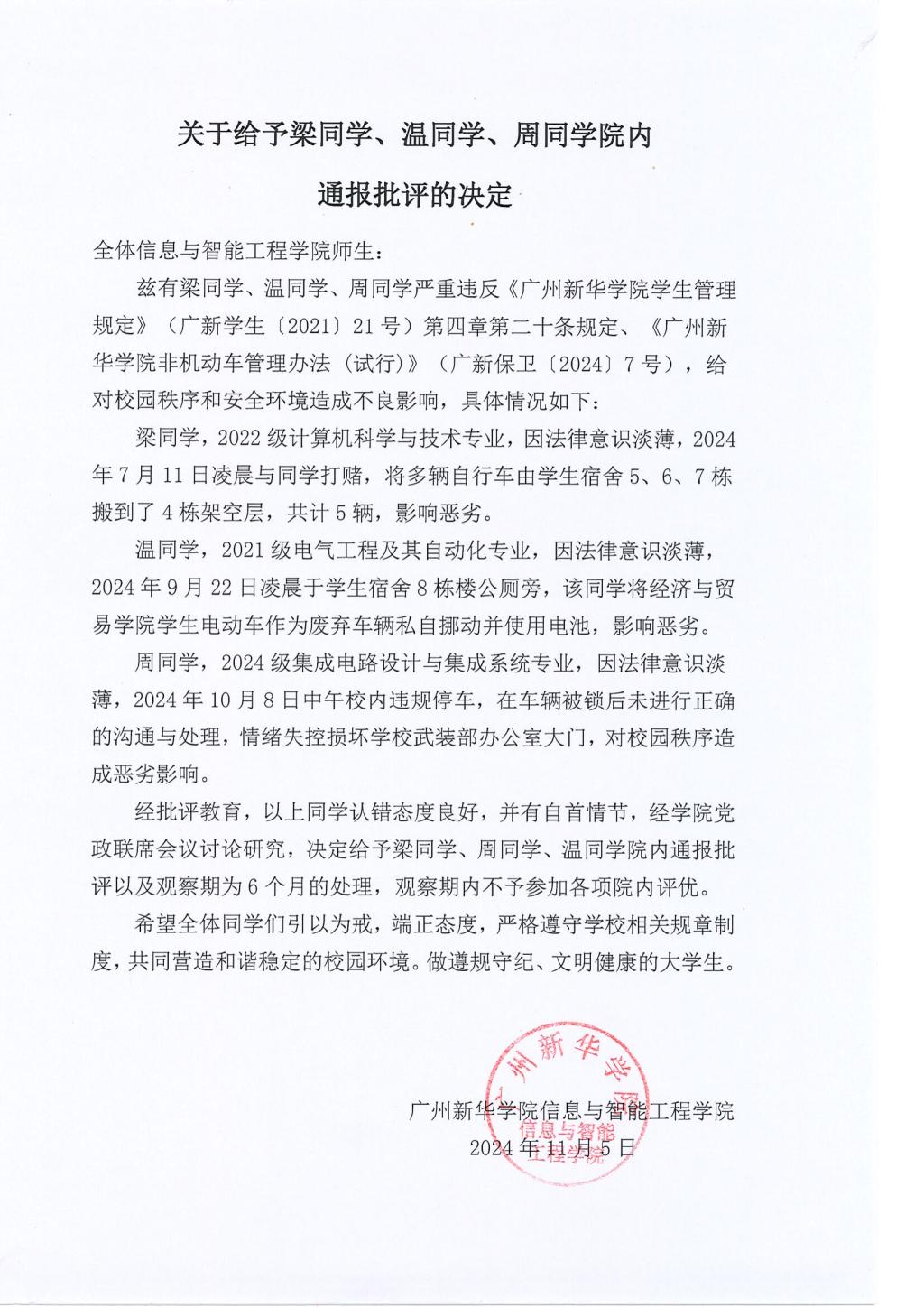 suncitygroup太阳新城关于给予梁同学、温同学、周同学院内通报批评的决定.pdf