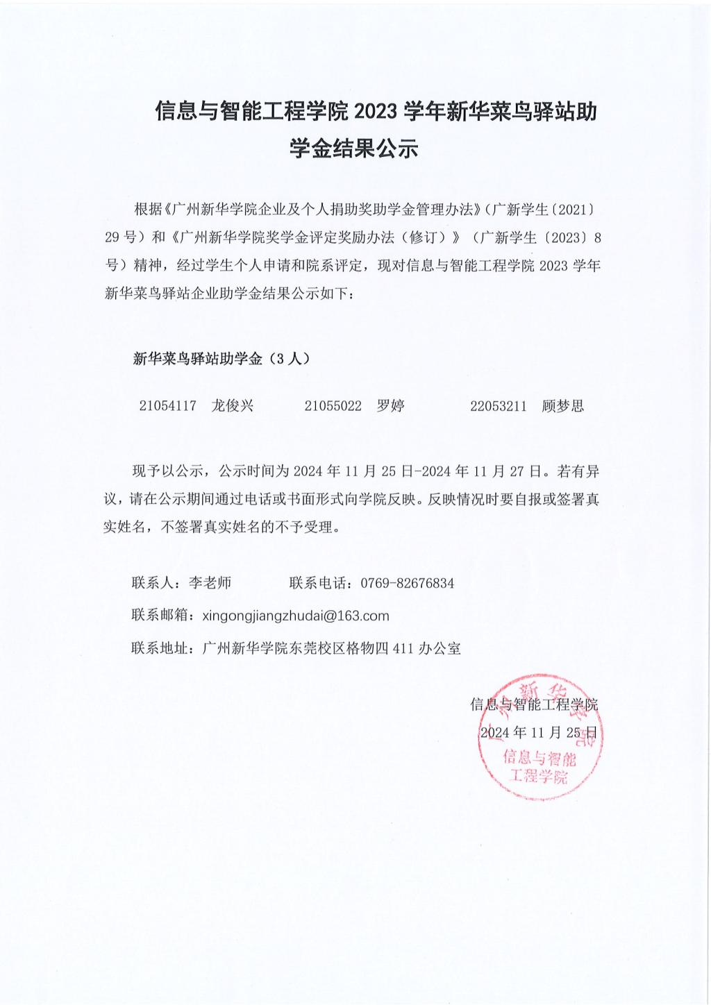 【公示】suncitygroup太阳新城2023学年新华菜鸟驿站助学金结果公示