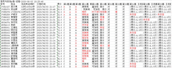 主观题批改完成后,考试数据就自动生成了,考试数据中详细标明了试卷名称、学生学号、姓名、得分、考试用时、交卷时间、客观题答案等。下载数据并保存,作为教务考试数据。