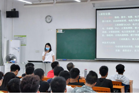 为了让20级电气工程及其自动化(以下简称“20电气”)专业的学生了解专业的相关信息以及明确对未来的规划,2020年10月19日下午,20电气专业全体同学在东莞校区定静二A304召开了专业介绍会。出席本次会议的师生有:20级电气辅导员张石兰老师,班主任袁讯老师,教务处叶大慧老师,实验室管理许志明老师以及17、18级电气的优秀学生代表,以及20电气全体学生共计80余人。