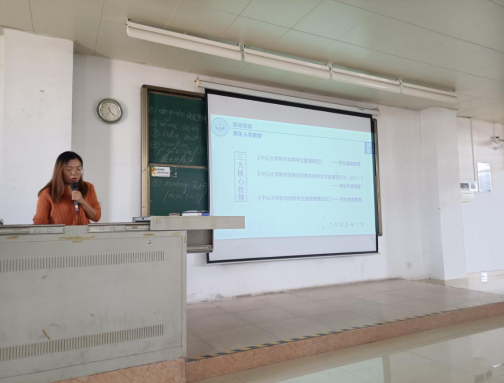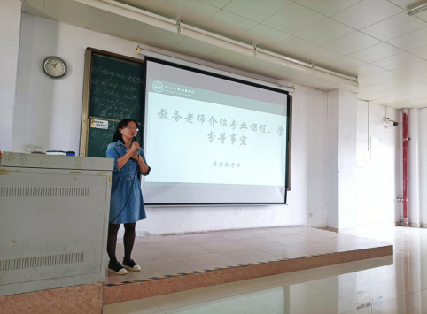 然后,教务老师黄雪敏老师向同学们介绍了各门专业课程、学分等事宜,让大家对大学选课有了大致了解。与此同时,还提醒同学们大学学习靠的是自律,希望同学们腹有诗书气自华。