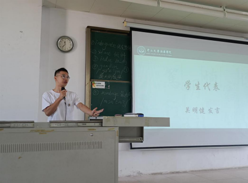 紧接着,是学生代表关明健学长激情澎湃地发言,首先,他提出要有目的地学习,培养团队精神,磨练出坚韧的品质,这不仅能更好地提高同学们的能力,让同学们接触到更高的平台。此外,还建议同学们学会依托竞赛为自己争取提升的机会,以赛促学。