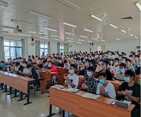 首先,辅导员丘丽琼老师和同学们向受邀出席活动并进行演讲的老师和师兄们表示了热烈的欢迎。