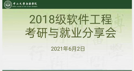 年年岁岁花相似,岁岁年年人不同,今年是2018级软件工程在广州新华学院求学的第三年,是面临人生选择关键的一年,也是承接着学校与社会重要桥梁的时间段。为了能让2018级软件工程全体学子清楚怎样才能更好的在考研与就业选择问题上有更加明确的目标以及选择目标之后应该注意的事项,2018级软件工程辅导员徐艳梅于2021年6月2日19:30在腾讯会议上举行以“既然选择了远方,便只顾风雨兼程”为主题的2018级软件工程考研与就业分享会。会议参加人员有2018级软件工程辅导员徐艳梅,2018级软件工程班主任周钰淮,信科院主任赵小蕾以及2017级优秀毕业生,大会由辅导员徐艳梅主持召开。
