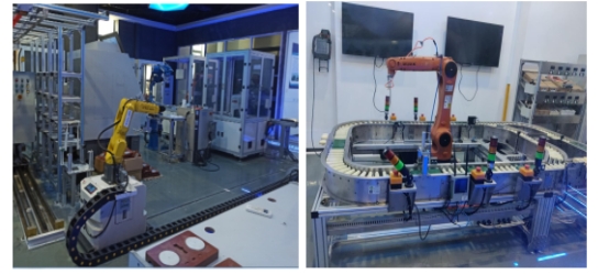 张总监向新华师生展示了松庆校企合作实际落地工业机器人及其实训场。