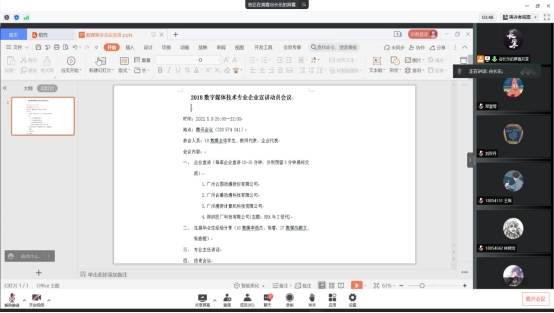5月9日晚8点,信息科学学院2018级数字媒体技术专业(以下称为“数媒”)在线上召开了“2018数字媒体技术专业企业宣讲动员会议”。本次会议邀请了广州云图动漫股份有限公司、广州古藤动漫科技有限公司、广州漫游计算机科技有限公司以及深圳匠厂科技有限公司四家企业开展线上宣讲,同时邀请了16数媒李浩杰、17数媒冯鹏文、张旌桓三位往届毕业生分享就业经验。