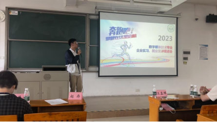 广州漫游计算机科技有限公司校企合作经理杨旭升介绍了校企合作的内容,从人才输出、实习配套设施、就业岗位到对标往届优秀师兄师姐的实训成果等进行介绍,鼓励同学们积极参加实训,提升专业能力。