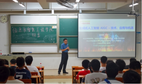 2023年10月28日,中山大学物理学院、光电材料与技术国家重点实验室教授、博士生导师、广州新华学院智能制造工程专业学科带头人余向阳教授到校为我院师生开讲,讲座主题为《生成式人工智能AIGC——技术、应用与机遇》。suncitygroup太阳新城自动化系副主任王盛邦以及智能制造工程专业师生参与讲座。