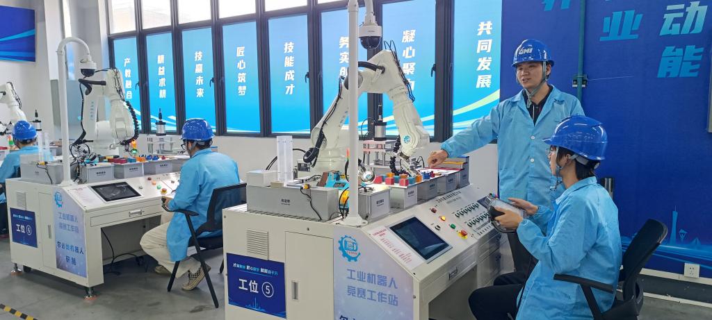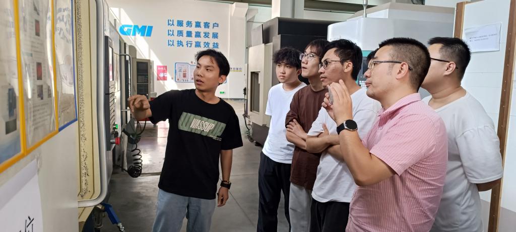 接下来的3天,金工实习实训活动进入了实战化阶段。依托机械研究所先进的制造中心实训平台,产教中心技术能手苏祥和亲自带队,引领学生们深入探索数控加工工艺、五轴机床的操作、以及工业机器人应用实践等核心技能。在紧张而充实的实训过程中,学生们不仅将所学知识应用于实践,更在团队合作与问题解决中锻炼了自身的综合素质。