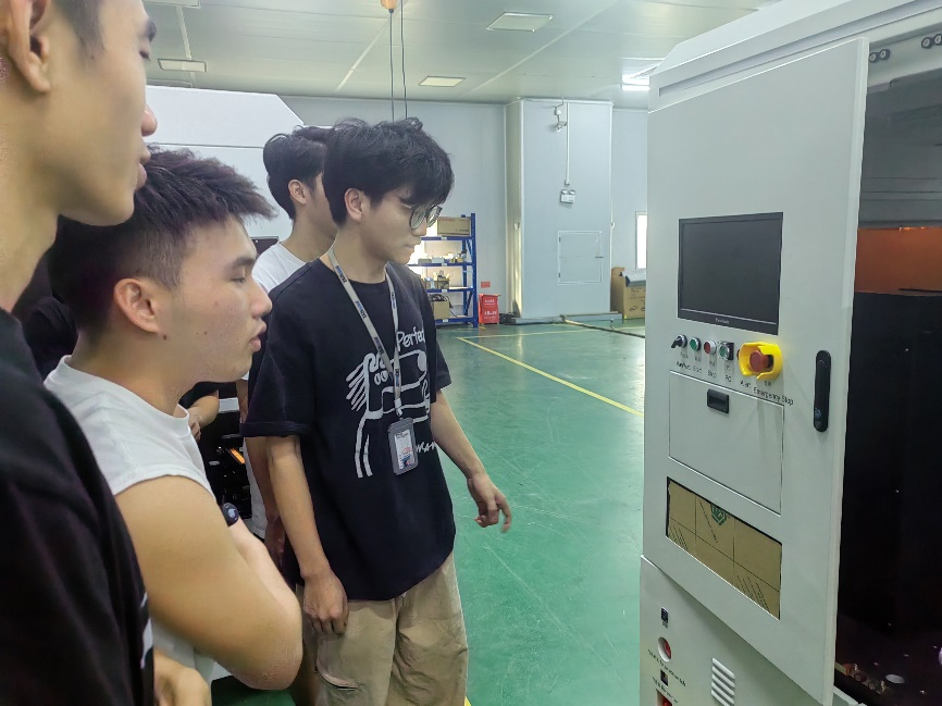 深圳道元工作人员为师生们详细介绍了公司的基本情况、发展历程、企业文化、未来发展趋势以及员工待遇和用人标准等,师生们对公司有了基本的了解。随后,师生们在公司领导王灿经理的带领下,参观了企业的装配车间、测试车间以及机械加工车间,深入了解了自动化设备的设计与制造过程,对企业产品和行业发展有了全面的认识。
